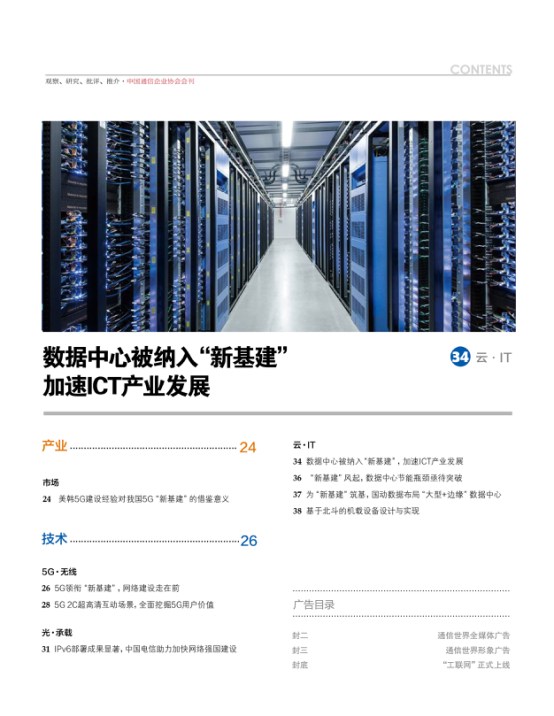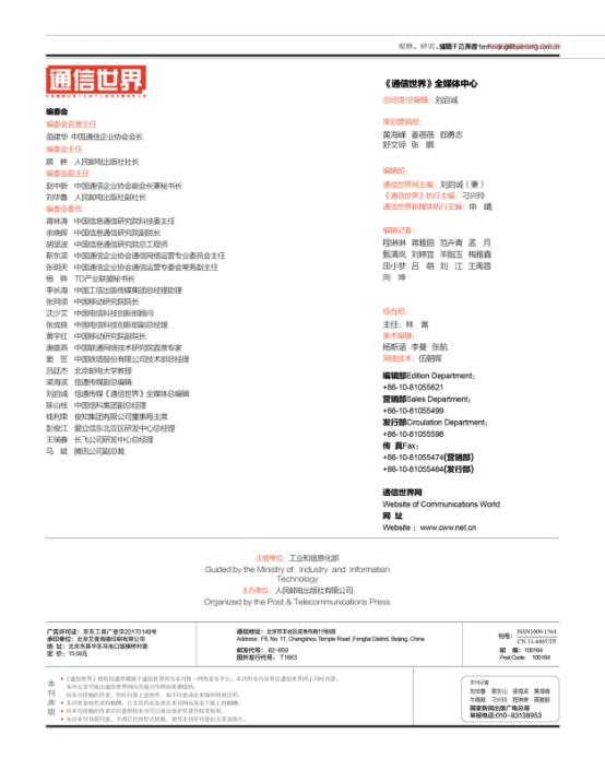 《通信世界》每月5、15、25日出版發(fā)行,全年共34期,開本為16開,共計44P,全彩四色印刷。《通信世界》紙質(zhì)發(fā)行、網(wǎng)絡(luò)發(fā)行、數(shù)據(jù)庫發(fā)行共覆蓋47萬人。